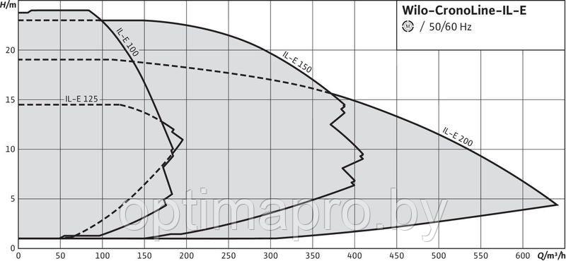 Wilo-CronoLine-IL-E – серия циркуляционных насосных агрегатов с сухим ротором. Насосы этой модельной линейки комплектуются автоматическим регулятором частоты вращения, что обеспечивает значительное снижение энергопотребления. Основные узлы агрегата базового исполнения произведены из конструкционного чугуна EN-GJL-250 и EN-GJL-200. Возможна поставка насосов с рабочим колесом из бронзы марки CuSn 10.